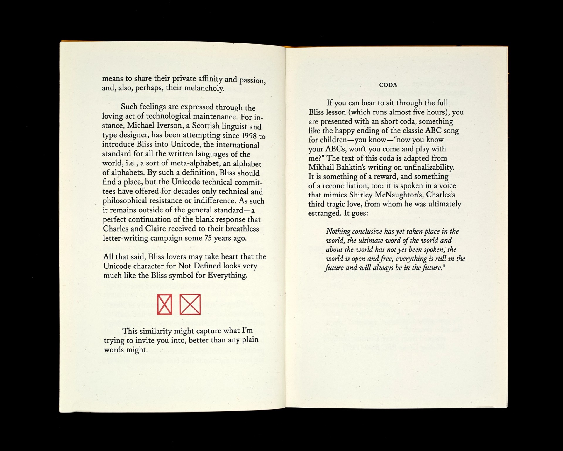 This text is a supplement to a video lesson intended to prime the reader for a xenoglossic encounter with Bliss, a language made entirely of small pictures. This first part of the text is a partial, loving retelling of the troubled history of the Bliss language and its creator. The second part is more incantatory. It acts as an invitation into a certain way of thinking about how language is used and how it can change.