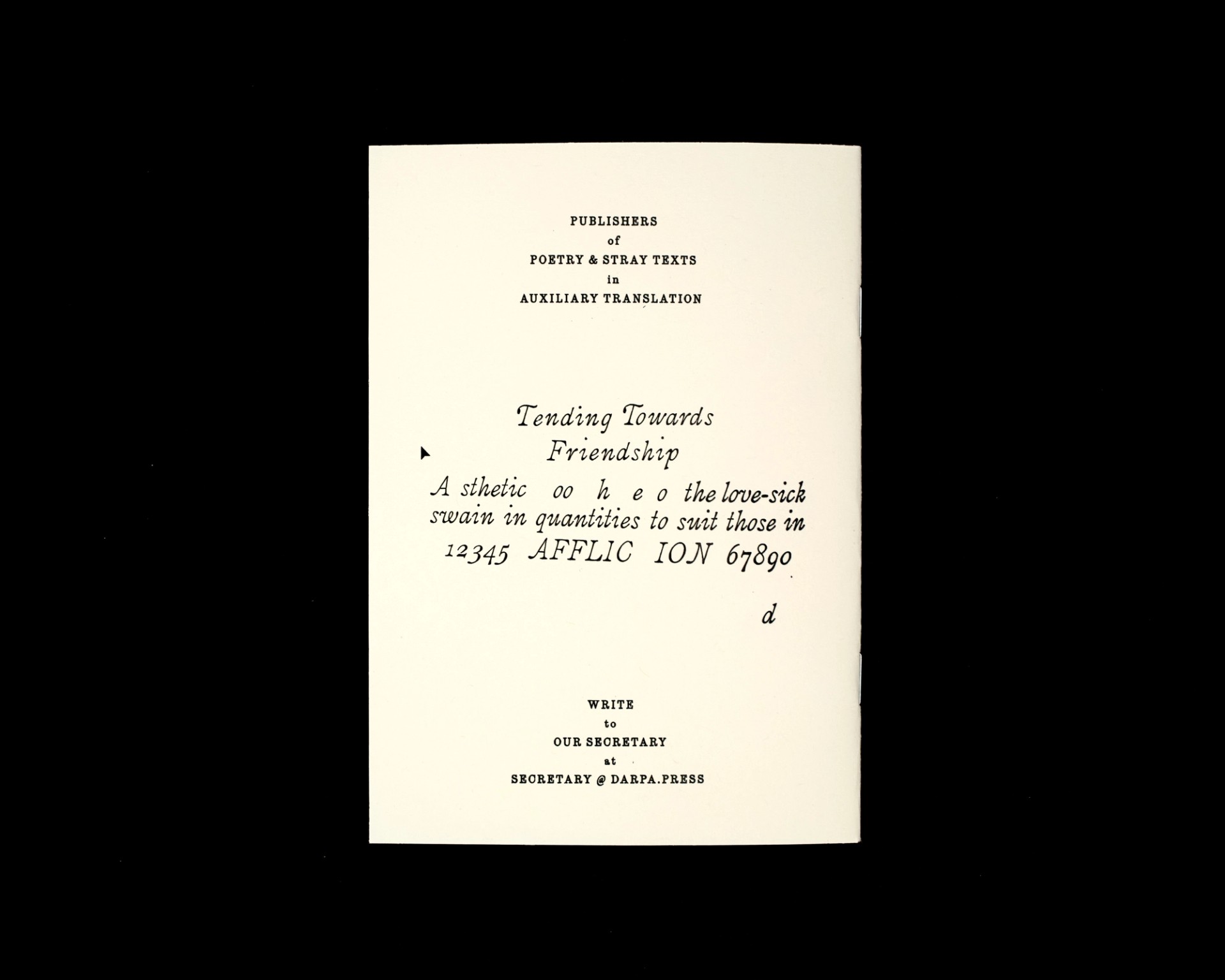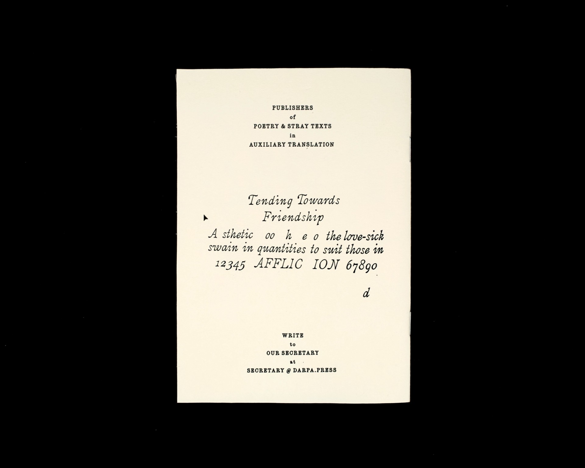 Our role in this arrangement is minor. It is a kind of promotion: we have only to set the conditions and we see the language and the text draw towards each other. It is an act of magnetic choice. We are pleased to recall these lovely things to you in print.