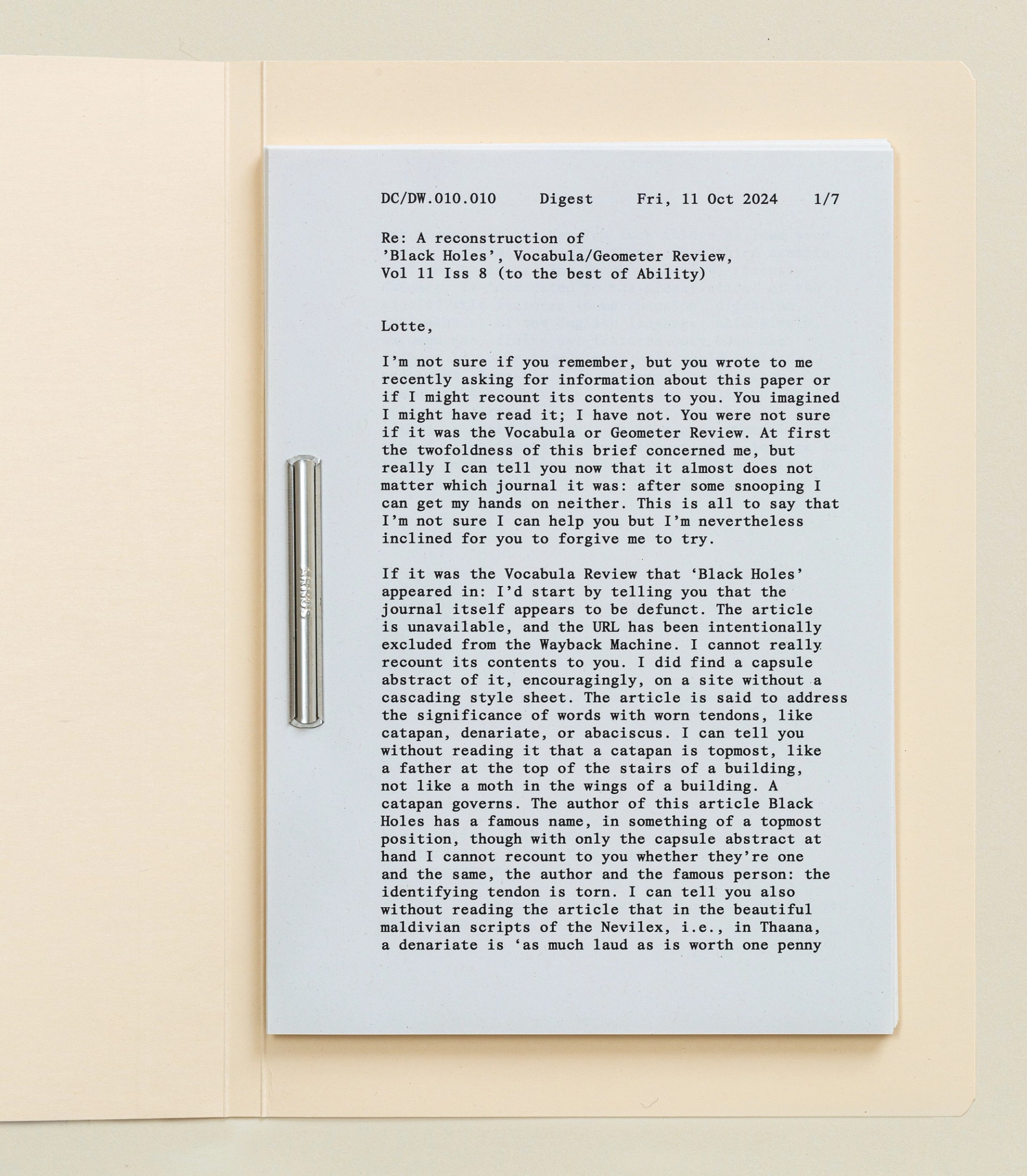 Darpa's tenth publication is occasioned by an email here and there, an occasional flat-footed abaciscus, as in a lonely mosaic or as in a geometer moth, or as in the record of a serpentine miner across a leaf distributed over imaginations. This is a file record of digests to date, collected by fastener.